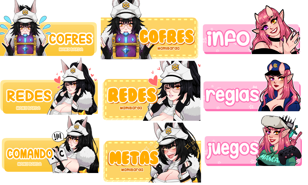 *Los precios pueden cambiar dependiendo de la complejidad del emote o panel / Si quieres otro tipo de panel puedes preguntar y podemos ajustar los precios para que sea mas comodo para ti!